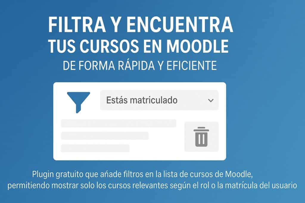 Courses filters es un plugin gratuito para Moodle que mejora la experiencia de navegación añadiendo filtros en la lista global de cursos. Es una herramienta muy útil en tareas de mantenimiento de Moodle, ya que ayuda a reducir el desorden y facilita el acceso a los cursos relevantes.
